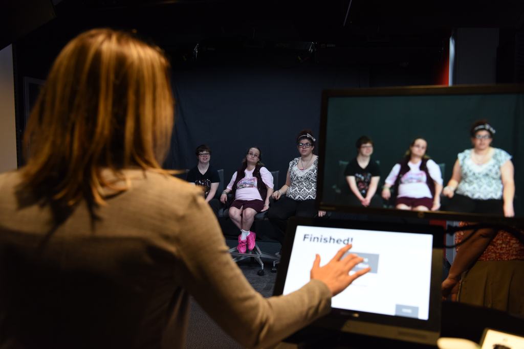 Photo of myself “finishing” the filming with three ShopWorks Theater Company actresses in the background and on the computer screen.